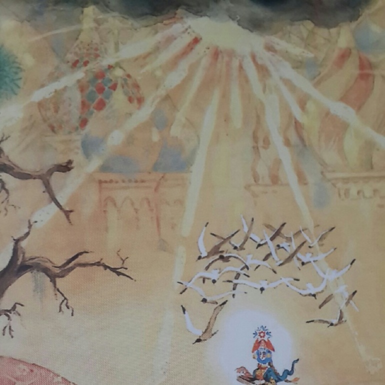 здесь птички действительно митуричевские уже, а вот задник о ранней Мавриной напоминает
