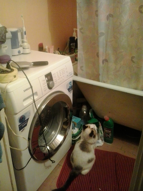 Ждет когда Денис закончит банные процедуры! А может подглядывает за ним?