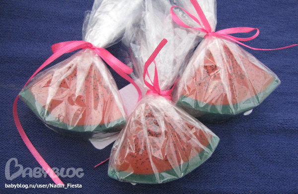 Мыло "Арбузик" с маком, маслом виноградных косточек, маслом рисовых отрубей, аромат Арбуз