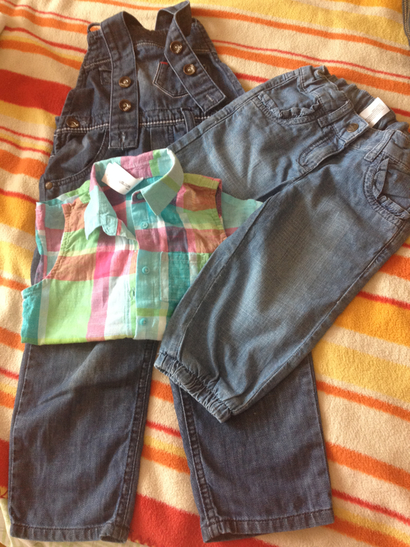 Плюс две стопки одежды такой как: джинсы, брюки, шорты и т.д. р/р 92-98. Все в прекрасном состоянии или совсем новое.