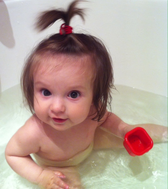 Из "новенького" прощается ручкой, кокетливо верча ей. Ходит вдоль опоры. Зубика по прежнему два. Приняла несколько раз бутылку со сладким биолактом! Ура!