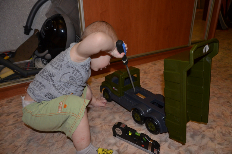 Игры стали более серьезные. Строит гаражи и дороги из кубиков, любит играть в железную дорогу из ИКЕИ. Очень любит трактора и машины. Играет в киндеров. Придумывает разнообразные сюжеты игр.
