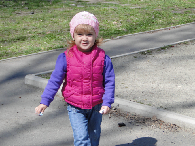 Наконец то у нас пришла уже весна .Можно раздется и раздется малость ребенка.Какая красота солнышко светит почки распускаются.Класс люблю весну.С Дашкой нагулялись домой так не хотелось идти.Но нужно баюшки.Сегодня рисовали мелками походжу ну очень понравилось.
