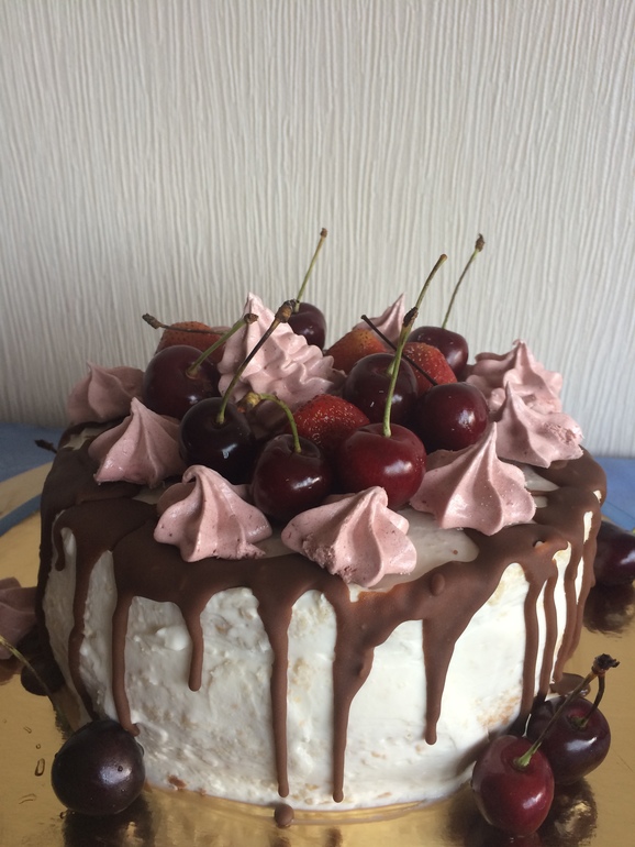тортик спонтанно за минут 40. (бисквиты уже были) собрался на мамин день рожденья. второй вариант к основному. украшали вместе с дочкой, так как праздновали в семейном кругу, так что тортик для своих