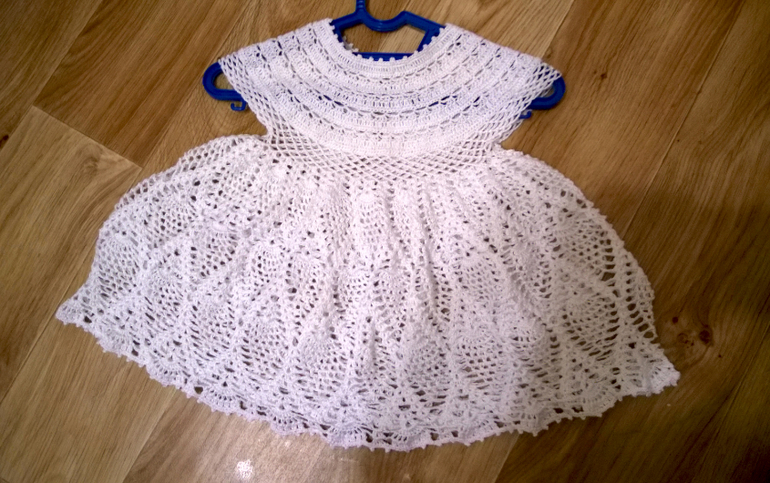 РукоделиеДевочки, милые, Вы все замечательные рукодельницы! Помогите, пожалуйста советом. Связала для дочи платье, но чего-то не хватает, а чего-не пойму. Может ленту с бантом на пояс? Или цветочки на груди? Посоветуйте, как лучше.
