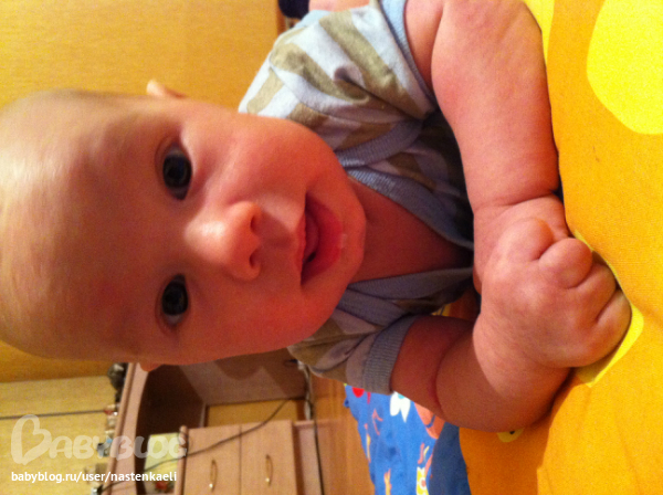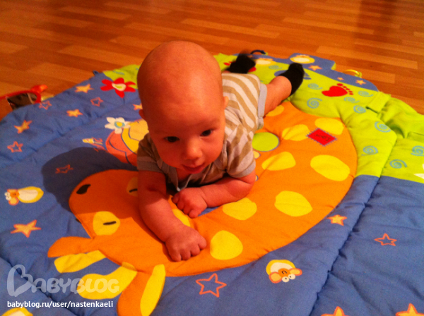 очень расстраивает наш участковый врач....пойдем на днях договариваться с главврачем о другом участковом....если не получитьсято наймем личного...телефончик уже есть,но пока звонить не стала.....еще Димка лежа на животе стоит на локтях....и очень хочет поднятся на руках....но не получается....а он снова и снова пробует и ножки подтягивает....какбудто на коленки встать хочет......и ползти.....рукойесли опору под ножки сделать то он отталкивается и так смешно вперед заваливается,вытаскивает из под себя ручки и все сначала.....так вот чудто типа ползет)