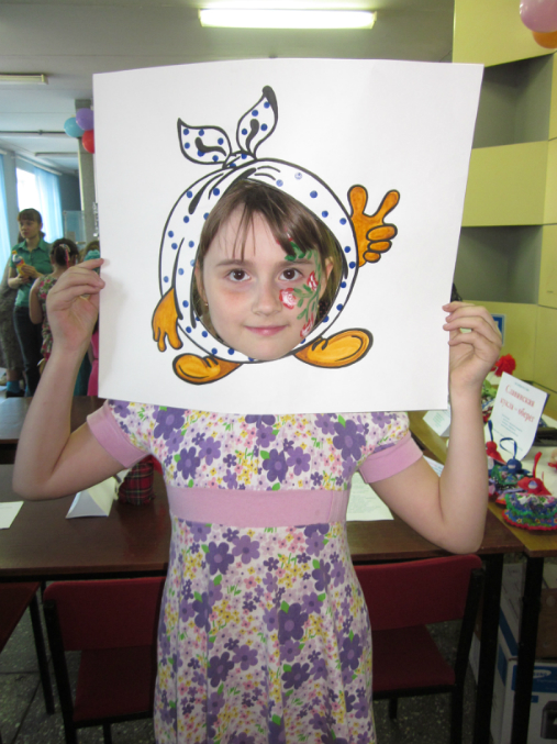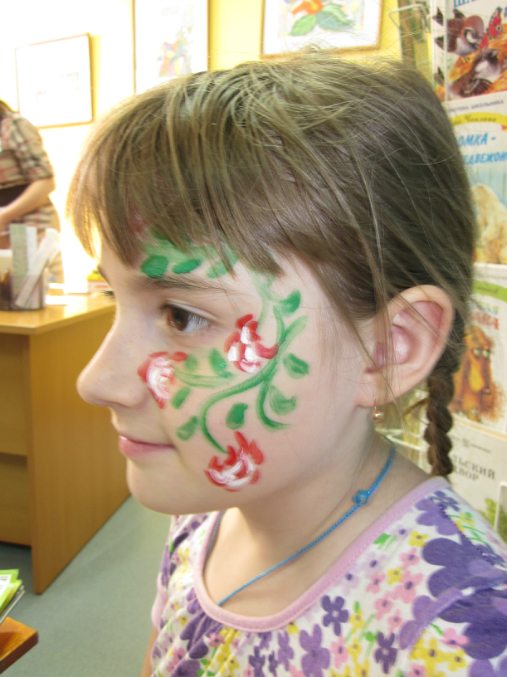 Боди арт на лице у дочки. Очереди были - ужасные. Всем очень хотелось походить разукрашеным