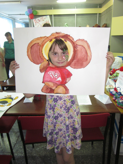 Вот так все гости фотографирвались с персонажами мультиков и сказок. Дочка выбрала пчелку Майю!