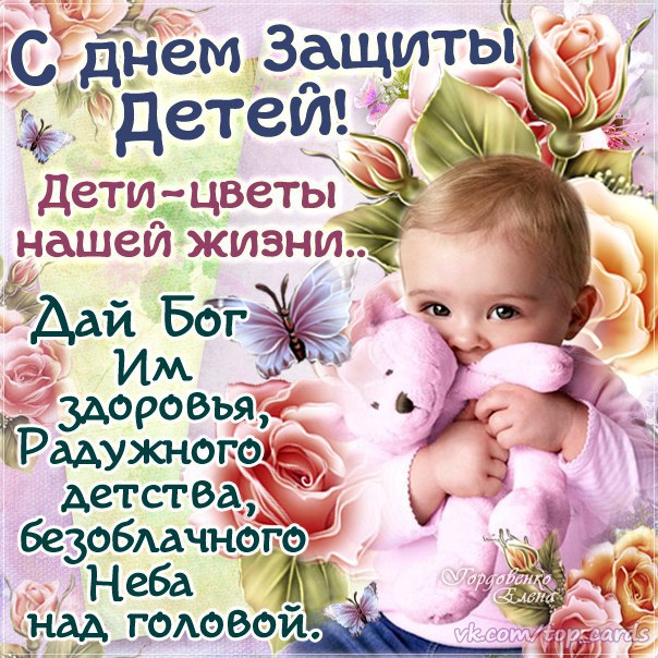 С Днем защиты детей! Пусть наши дети как можно дольше остаются детьми. Беззаботными, веселыми, радостными. Хочется пожелать, чтобы каждый ребенок был здоров и окружен заботой родителей. Пусть небо над головой всегда будет мирным, а каждый новый день - добрым и интересным. А родителям пожелаем терпения, доброты и нежности. Не забывайте, что именно вы в ответе за счастливое и безопасное детство ребятишек!