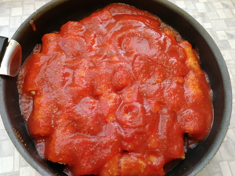 Залить томатным соусом: