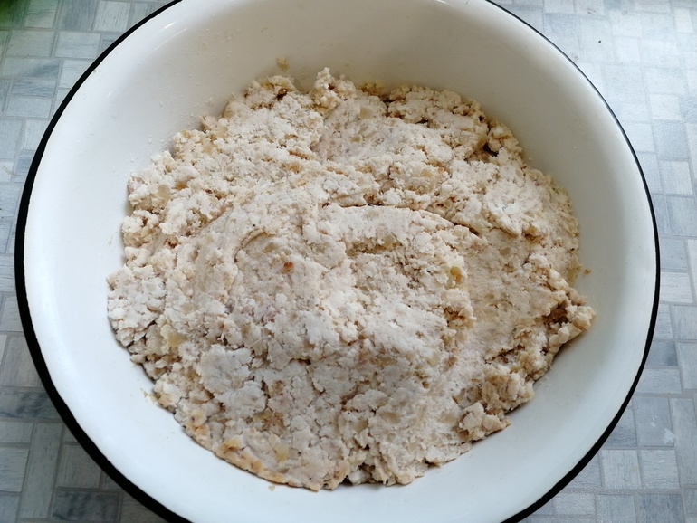 Смолоть курицу и лук. Посолить, добавить черный молотый перец, перемешать: