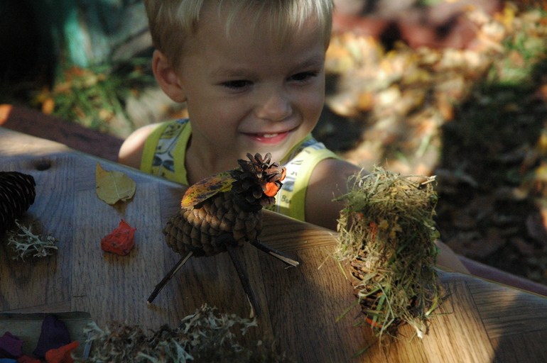 В лесу мы пообщались на тему осени - это сейчас основная тема разговора. По пути мы собирали грибы (только беленькие), шишки, красивые осенние листочки, мох, веточки. Желудей так и нету...((( вообще...(((