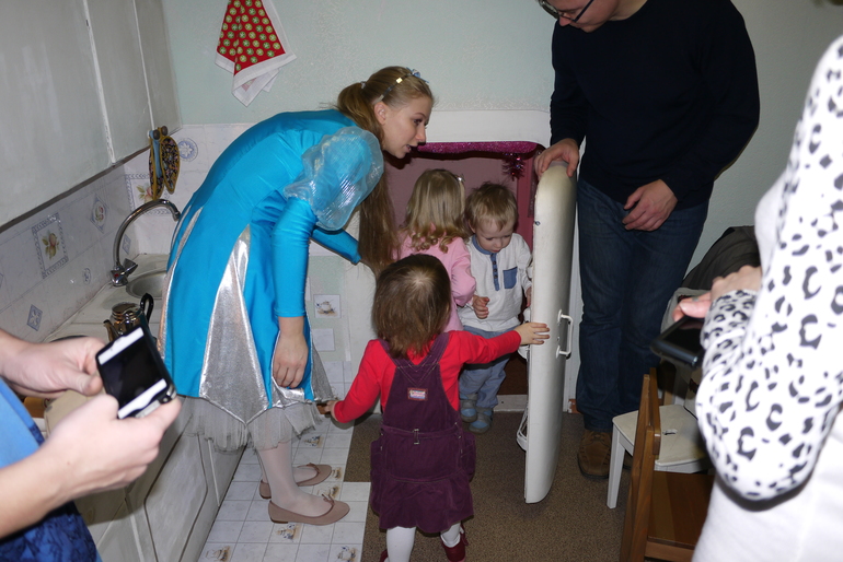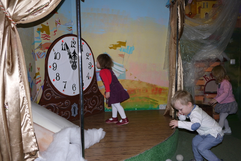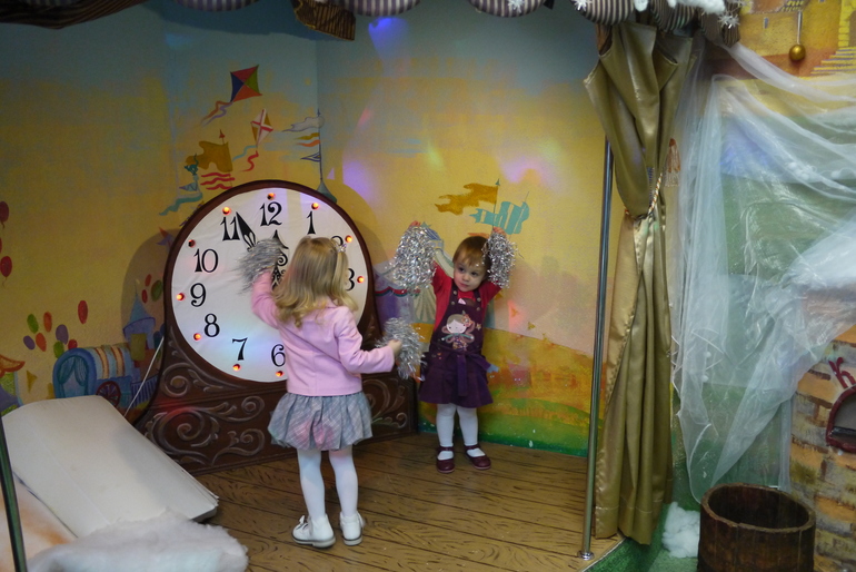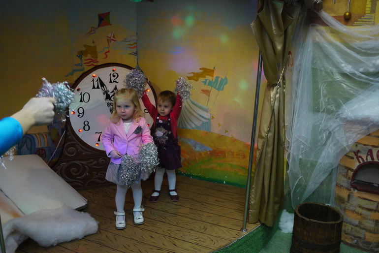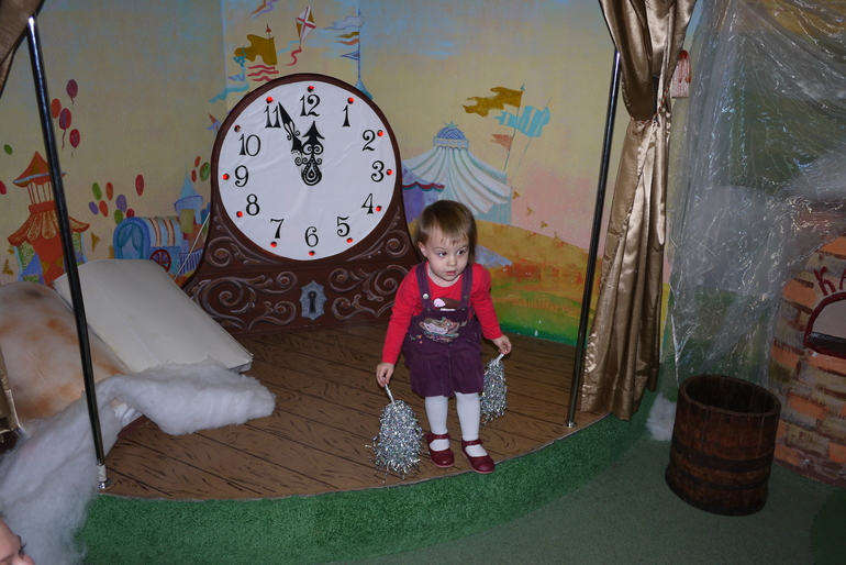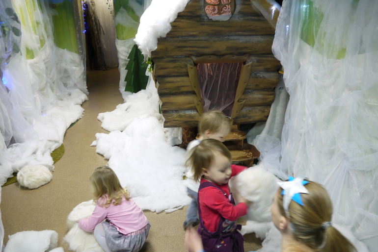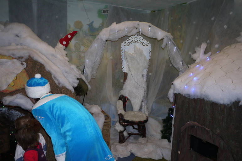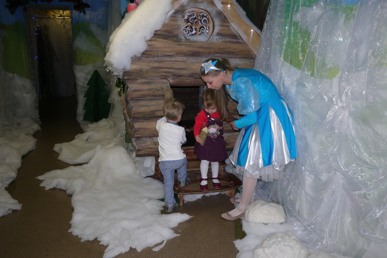 Этот крошечный вход в кабинет к деду Морозу, Мирославочка быстренько в него заскочила и начала там танцевать, но Снегурочка ее отвлекла и позвала водить хоровод и на раздачу подарков.