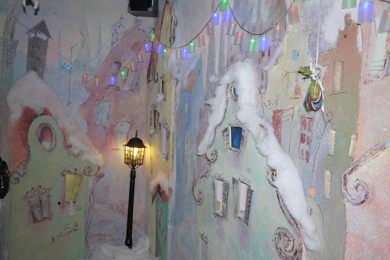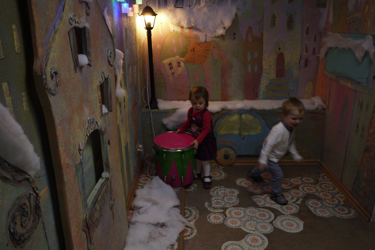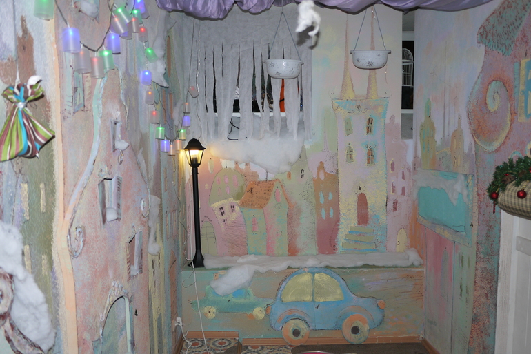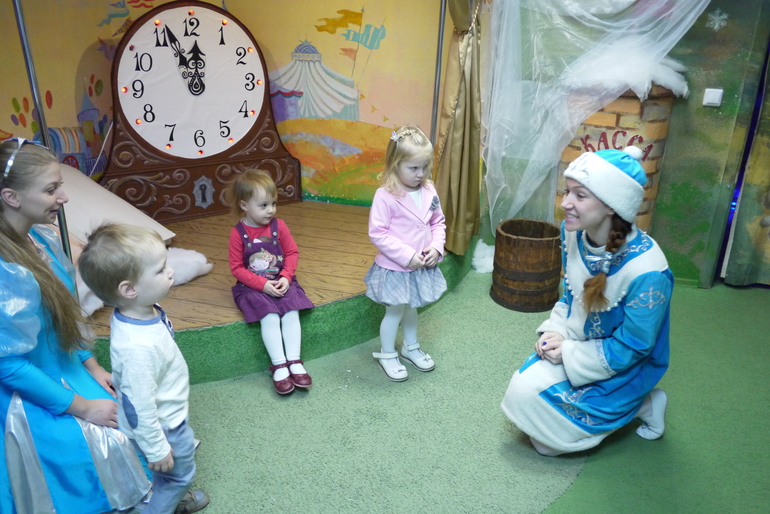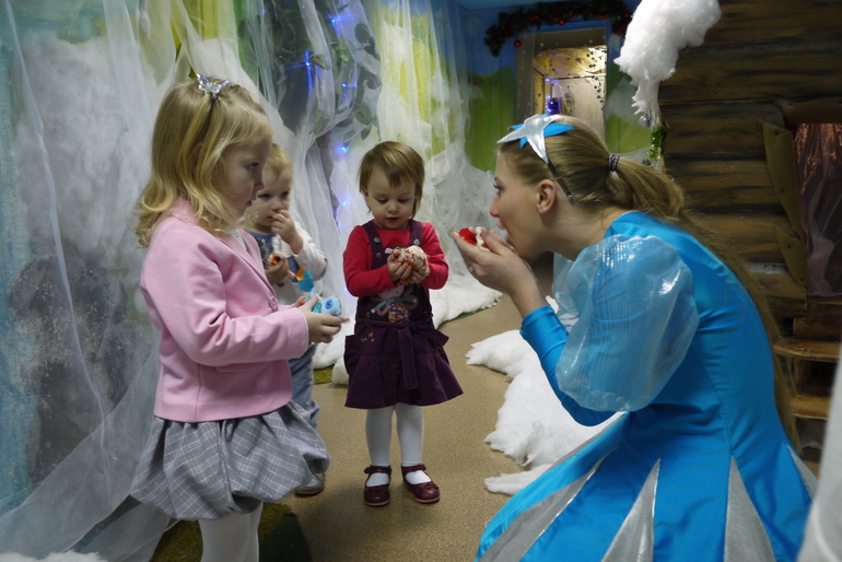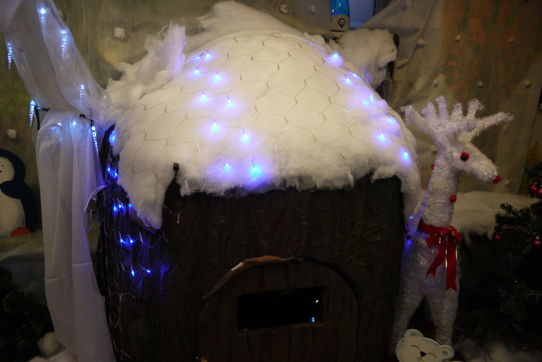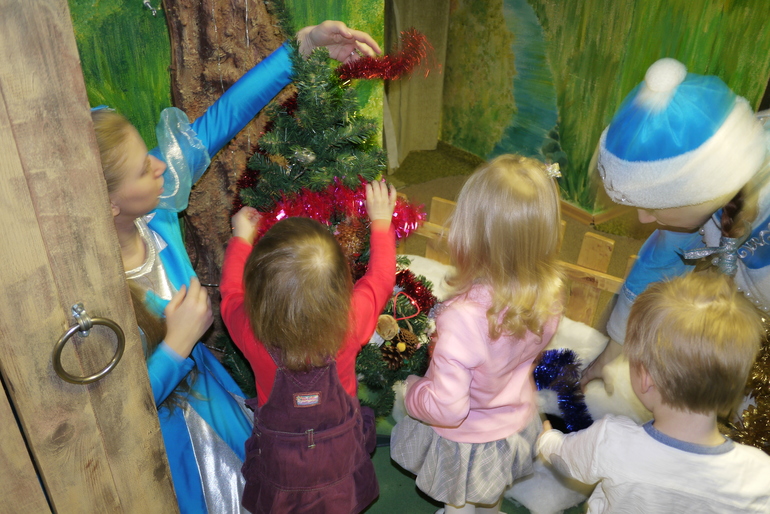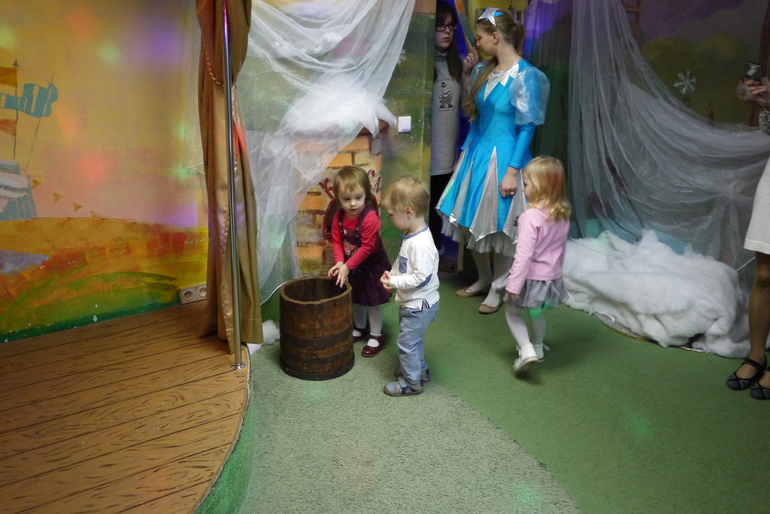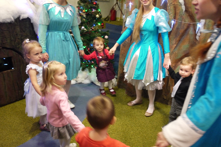 Этот крошечный вход в кабинет к деду Морозу, Мирославочка быстренько в него заскочила и начала там танцевать, но Снегурочка ее отвлекла и позвала водить хоровод и на раздачу подарков.