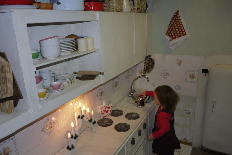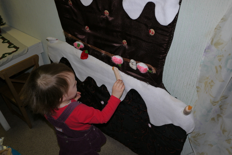 А дальше кухня Фрекин Бок, на которой надо было украсить торт. Кухня меня покорила, если бы у меня в детстве была такая кухня, я бы от туда не уходила. Мирославе тоже понравилась кухня, еще и трогать все можно))))