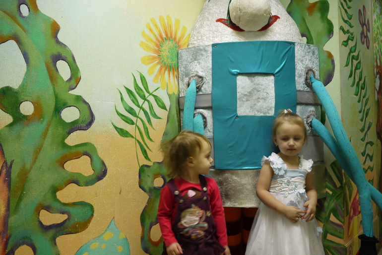Мирослава хотела до представления сфотографироваться с роботом, но вбежала девочка из другой комнаты и Мирослава немного отвлеклась.