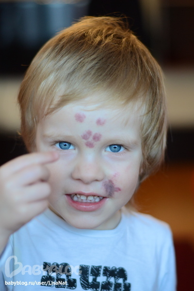 На обратной дороге я купила ему чипсы ( да,да, кидайте в меня тухлые помидоры..), он просил конфетку, но как назло рядом не было ни одного ларька с чупами....И мы мирно доехали домой. Войдя в квартиру и посмотрев в зеркало, Иль очень удивился своему отражению. Я его спросила - Красивые тебе тетя кружочки сделала? Сразу разулыбался, и ответил- Дя!