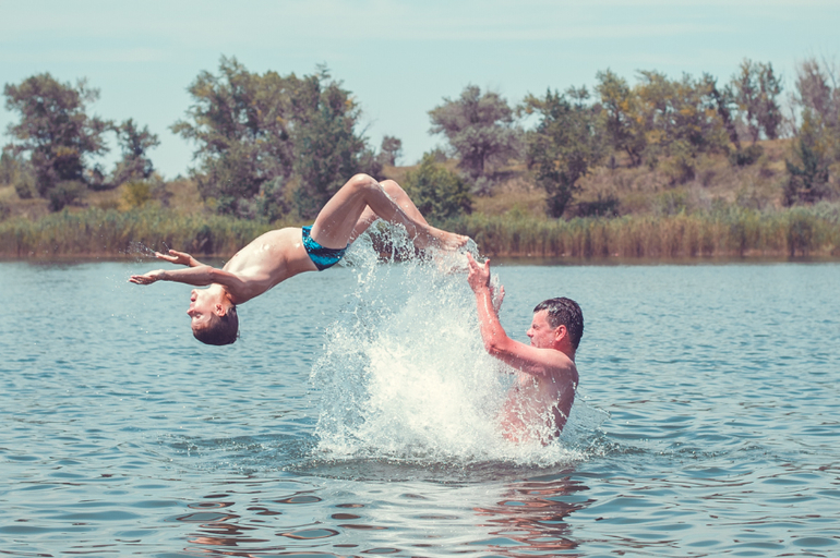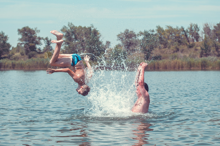 Тут он успел перевернуться, и вошёл в воду ногами.
