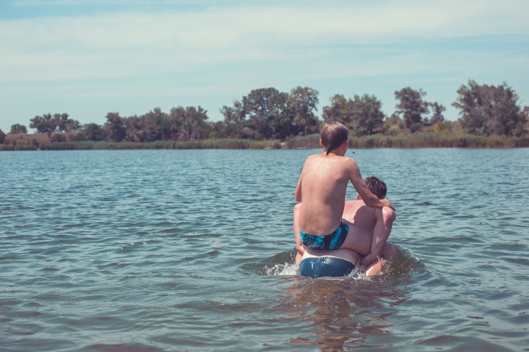 Нормальная мама говорит своему ребёнку - брось палку! Не лезь в воду….