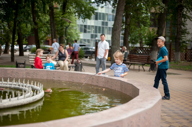 А мама-фотограф : Сынок, возьми палочку, поковыряйся ею в фонтане….А ребёнок и рад.
