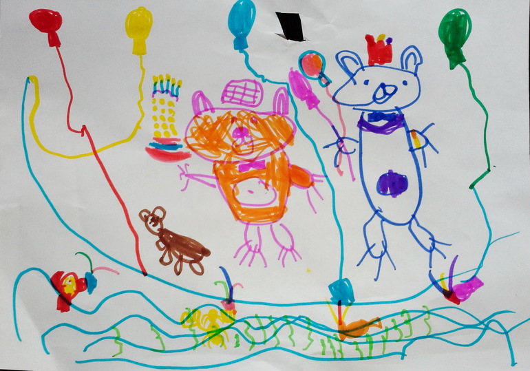 Рисунки МайиПапа Мишка (в клетчатой шляпе) поздравляет маму мишку. Он подарил ей корону и красивый браслетик, и еще испек торт. Они плывут в лодочке, а с ними их сынишка. Рыбки и рак тоже поздравляют маму хлопушками :)