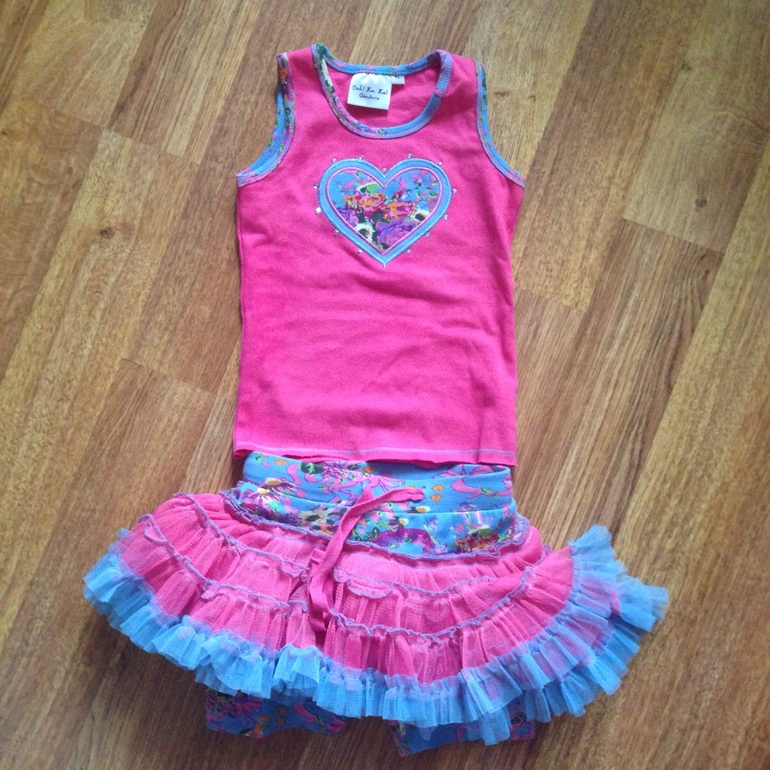 5. Комплект Ола ла топ+юбка(снизу шортики) 1000р цвет ярче чем на фото