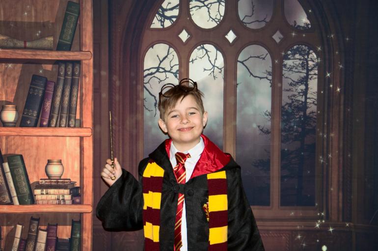 - костюм ученика Грифендора, как у Гарри Поттера (купила на али - мантия так себе, а шарфик приличный; волшебная палочка дубина пластмассовая, очки только для фотосета... вывод - поиграться хватит),
