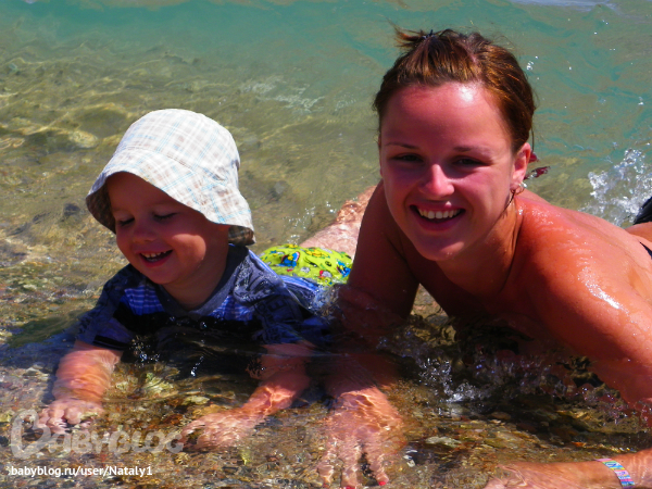 Наконец-то искупали нашего сыночка в ТЕПЛОМ море +30!!! До этого 2 раза в Крыму и холодном море +20
