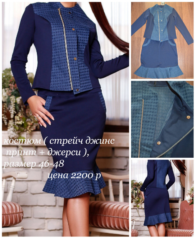18. В наличии!!! Очень красивый костюм, вставки экокожа, 48 размер