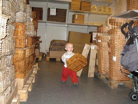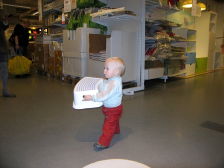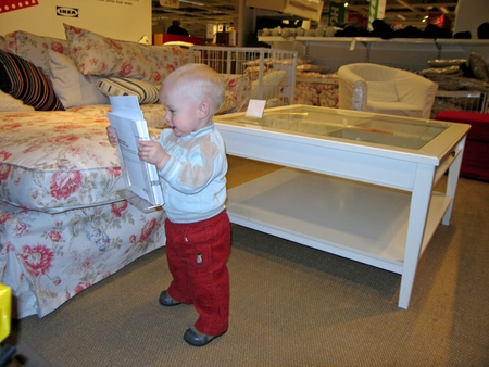 На дня мы были в Икеа, я взяла с собой фотик - давно хотела запечатлеть Ваню в каком-нибудь магазине. А тем более сейчас Ваня стал таким деловым - везде ходит, лазиет, прыгает, трогает, берет, переносит-) А Икеа вообще для нас собенный магазин! Икеа стал для Вани не только первым магазином, но и первым местом большого скопления людей, этаким своеобразным "местом выхода в люди"