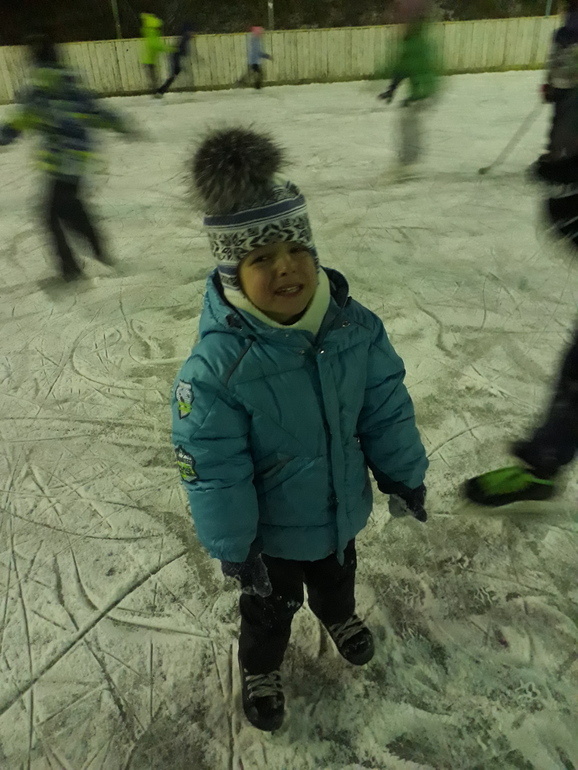 Дима просто стоял и орал "скользко! держите меня!" второй день круче- он уползал оттуда на четвереньках. на третий раз научился стоять и теперь он ходит на коньках. но еще не ездит. Муж мой счастливый на след раз вручает ему клюшку и шайбу.. а Димка сейчас бегает на коньках и танцует под музыку))))) я ж говорю- танцы!!!! смешно до слез); а на данилку смотреть интересно- аж дух захватывает