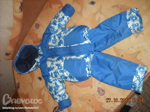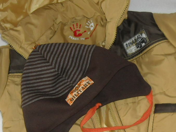 Очень долго у меня лежало мое синтепоновое пальто. В очень хорошем состоянии, вот только на груди кошка когтями его "поцарапала)))". И вот у меня до него дошли руки, и из пальто получилась курточка для сыночка. К курточке пошилась шапочка (интерлок с начесом и рибана), и джинсики. Кстати- ждинсы переделаны из папиных:)!!! Глядите: