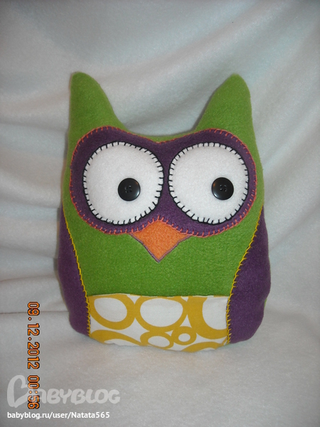 Мягкая подушка-игрушка Совушка. Ее ростик 27 см. Сшита из флиса и хлопка. На пузике есть кармашек))) Глядите