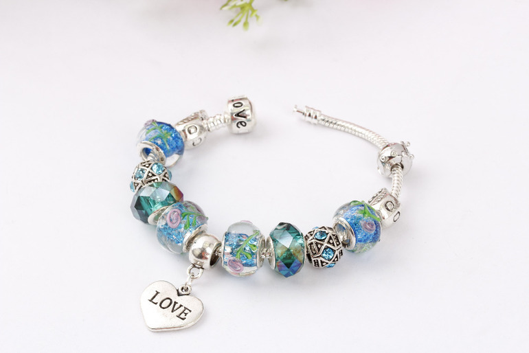 Браслет длиной 20см, надпись на замочке love. Шармы с цепочки не снимаются.