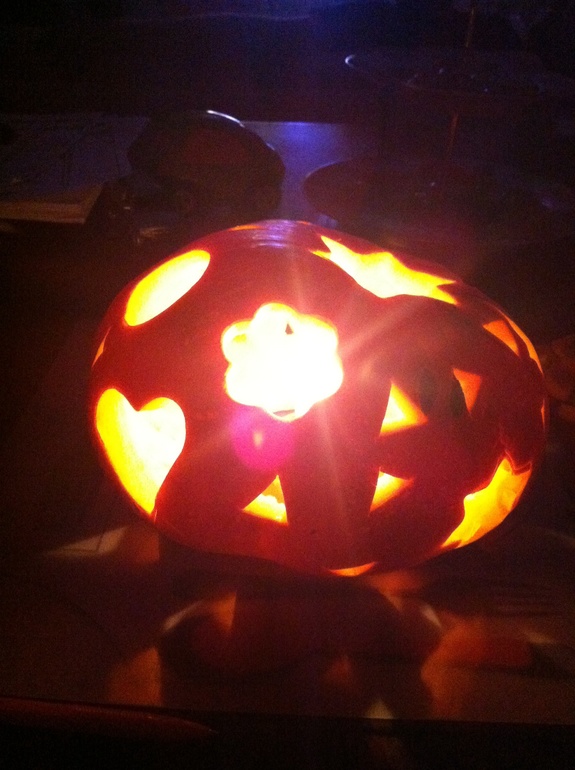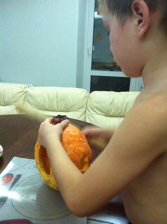 Украшали комнату:гирлянды и веночек и готовились к Хэллоуину:делали тыкву подсвечник(упростила Тимке задание-выбивали скалкой формочки для печения)