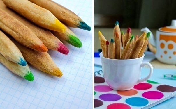 Но учтите, карандаши не из дерева, легонько поскоблите их острым ножом. Обмакните кончики в красители.