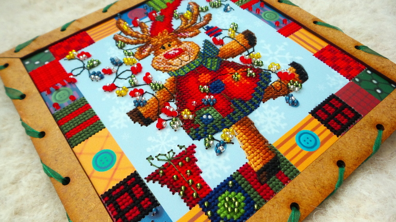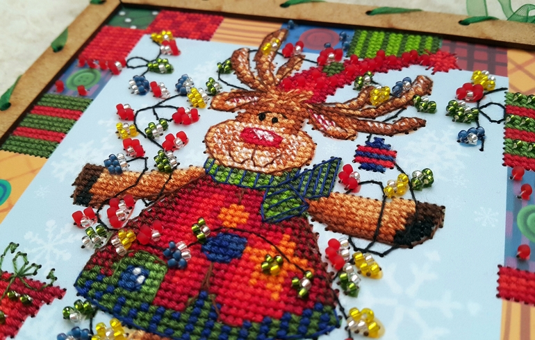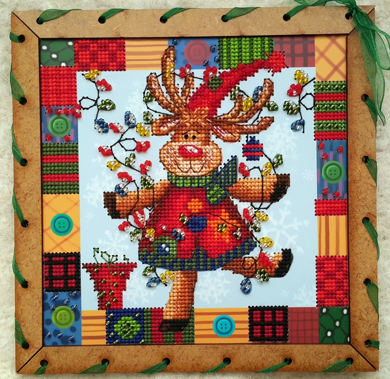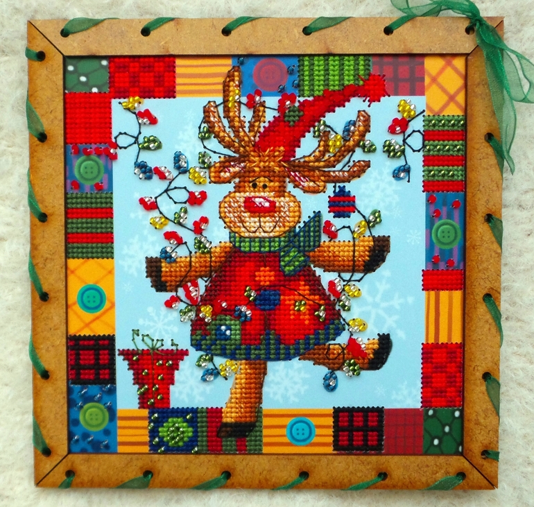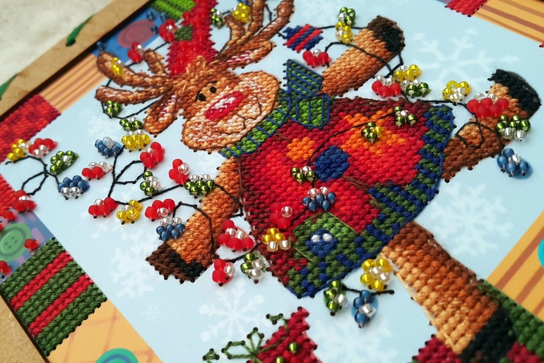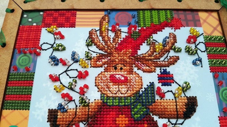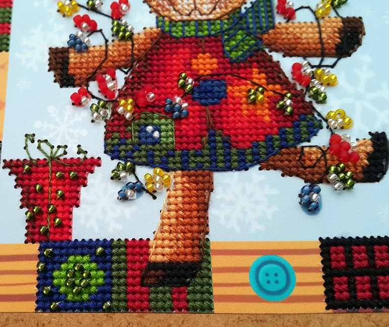 Единственный косяк - это бэк, такое впечатление, что на схеме его себе рисовал сам лось, левым копытом и именно в том состоянии, в котором мы его видим на картинке ))) Я, конечно, все понимаю, многие производители бэк через серединки клеточек рисуют, но у них-то канва, а не картонка с дырками в определенных местах! В общем, бэк как смогла, так вышила )))