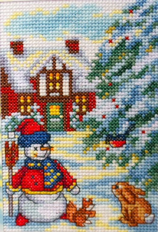 То, что заяц почему-то рыжий, я сообразила только вчера, когда его уже вышила, может это порода какая-то особенная, не знаю, ну рыжий, и ладно, мне тут вообще больше всего домик нравится )) И еще там много белого металлика, и снежок на самом деле искрится, но на фото этого, как всегда, не видно ))