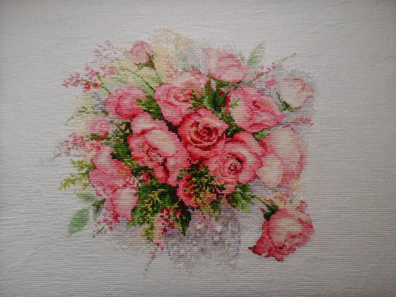 А ещё 3 марта у моей мамулички был юбилей- 55 лет! Так как мамочка большая поклонница моих "творческих вытворялок" я решила вышить ей "Акварельные розы" от Риолис. Процесс создания этой красоты меня просто завораживал, такие нежные, мягкие оттенки, вышивать было одно удовольствие, поэтому я справилась меньше чем за месяц (а для меня это очень быстро при наличии двух шилопопых дочек).