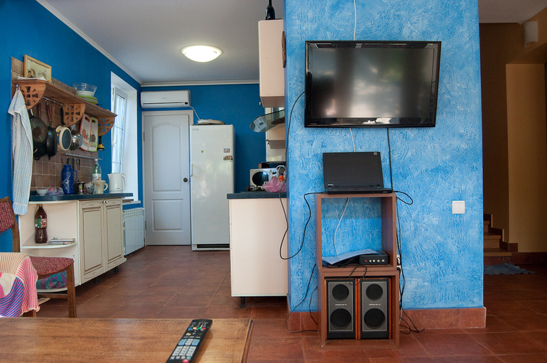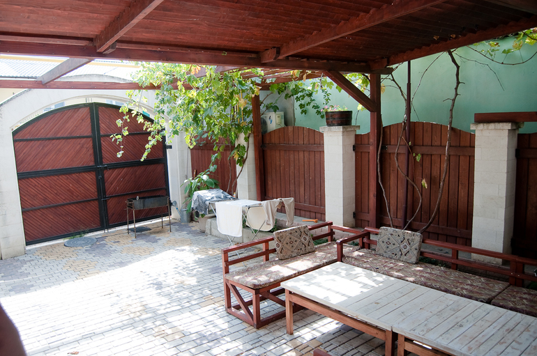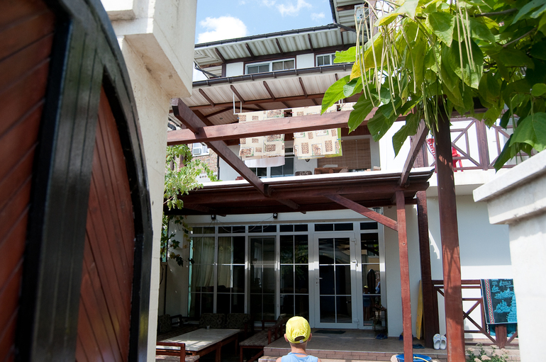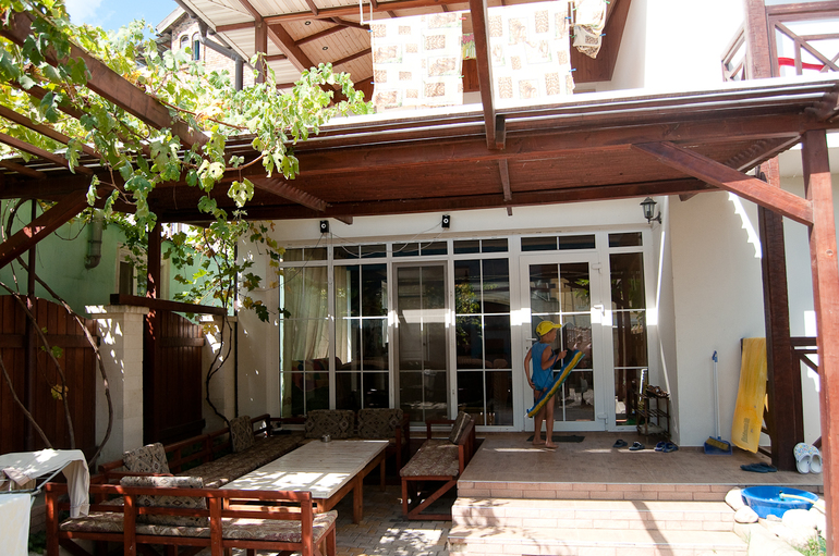 Расстроеные вернулись в Приморский. Там у меня был еще один гостевой дом на примете. Кстати, первый по вероятности в моем списке. Но у меня не было ни точного адреса, ни телефона. Только название переулка, да еще помнила как он выглядит по фотографиям. надо сказать нашли его быстро. Дернулись в ворота - заперто. На воротах телефон. Позвонили. после некоторых сомнений, сказали, что у них есть для нас номер, сейчас подойдет женщина и покажет нам. Посмотрели. Все очень понравилось. А главное цена была озвучена - 700 руб. в сутки. Сережка сразу сказал. что остаемся здесь. Ноо мы все же взяли паузу, сходили поесть. А потом все же заехали в этот дом. О чем ни разу не пожалели.