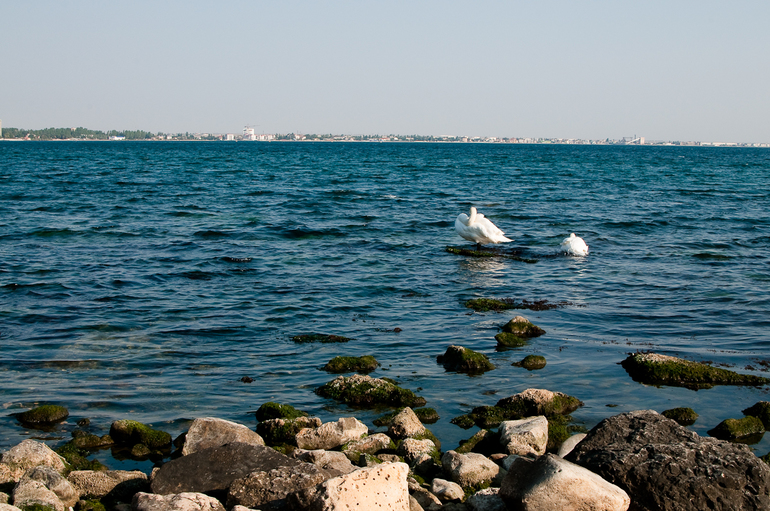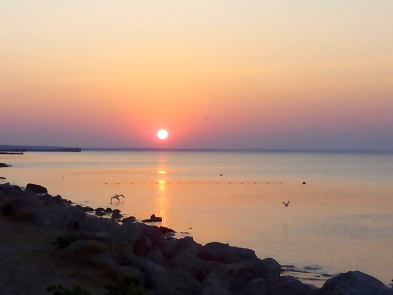 Тут нас ждало жуткое разочарование. пляж песчаный, но вход в море из огромных качающихся валунов, плит и камней поросших скользкими водорослями. То еще удовольствие. Дорожку в море выложили мешками с пескрм не менее скользкими чем сами камни и водоросли. народ качается, падает. В общем кое-как искупались и без сожаления уехали из этого поселка. Все-таки руки и ноги хочется оставить целыми. а места можно найти и получше.