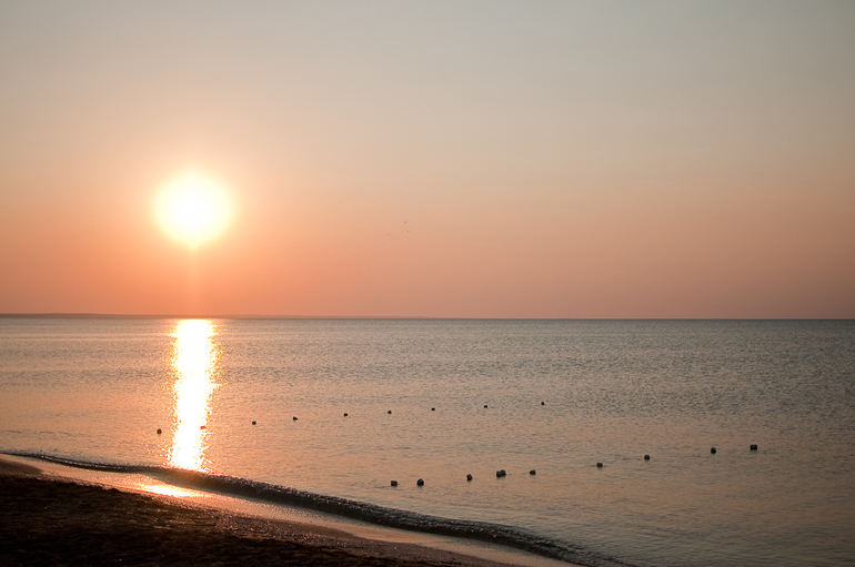 В 5 утра я проснулась, дльнобои почти все разъехались. зато подъехало несколько легковушек. около 6 проснулся Сережка. Вышли осмотреться. дорого проходит прямо по берегу моря. Красота! Рассвет!