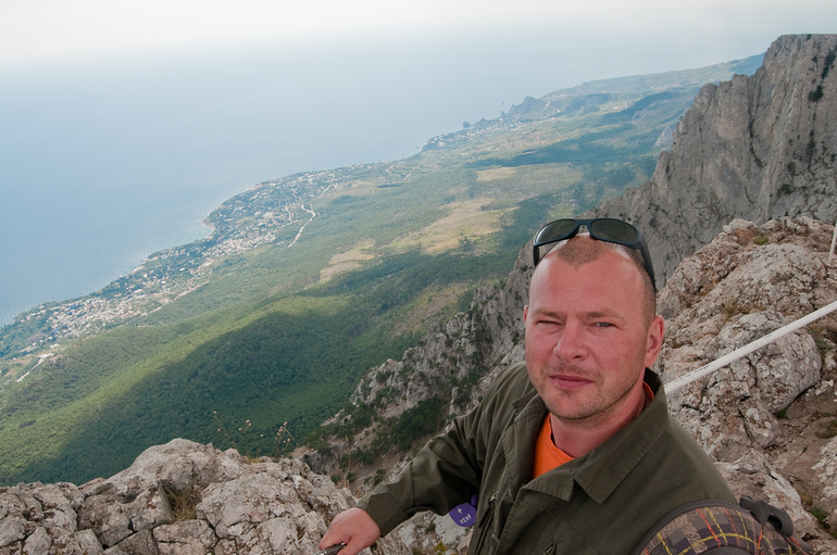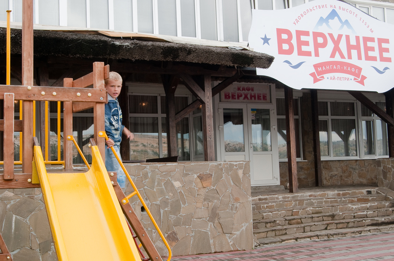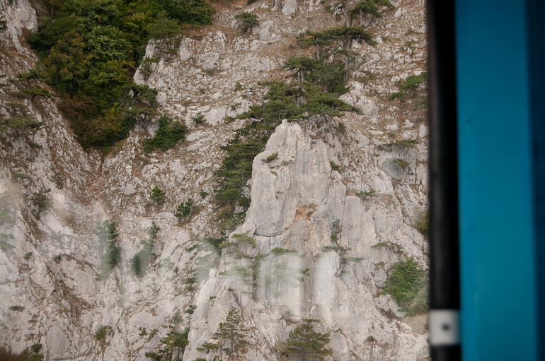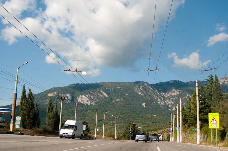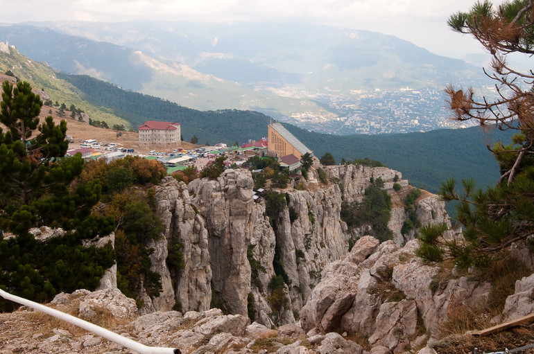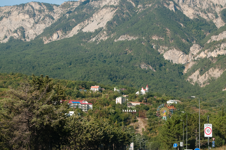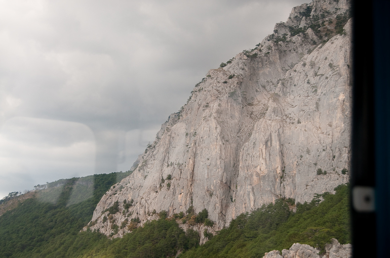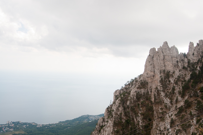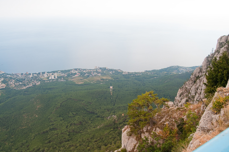 Приехали в Мисхор, где начинается большая канатная дорога. Летом там многочасовые очереди в кассу. Наперебой кричат водители микроавтобусов, предлагая без очереди подняться по серпантину. Мы стояли где-то около часа, может чуть меньше.