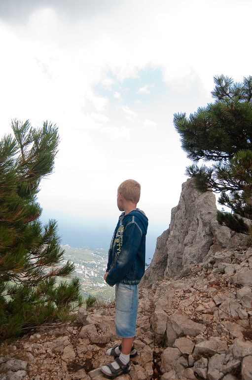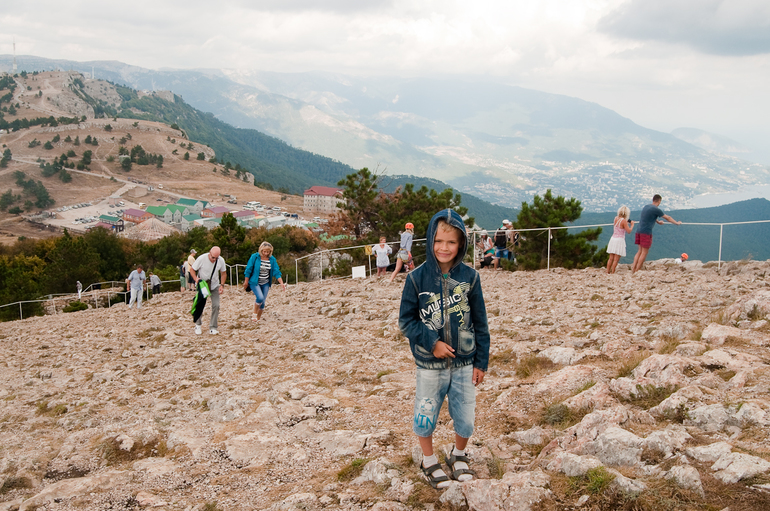 После сытного обеда мы решили подняться на зубцы Ай-Петри. Туда надо топать пешком, заплатив по 100р. за каждого взрослого.