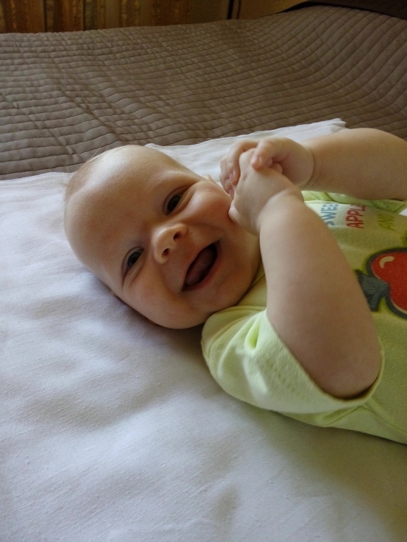 МаксимкаВчера, 4 августа, посетили поликлинику, педиатр сказала есть небольшой тонус, но я думаю мы это исправим массажем (записалась на массаж с 17.08). Опять нужно посетить специалистов (невролог, ортопед) и сдать анализы (кровь, моча). Прививки нам не поставили, т.к., мы пришли раньше 3-х месяцев, поэтому прививаться будем после посещения невролога.