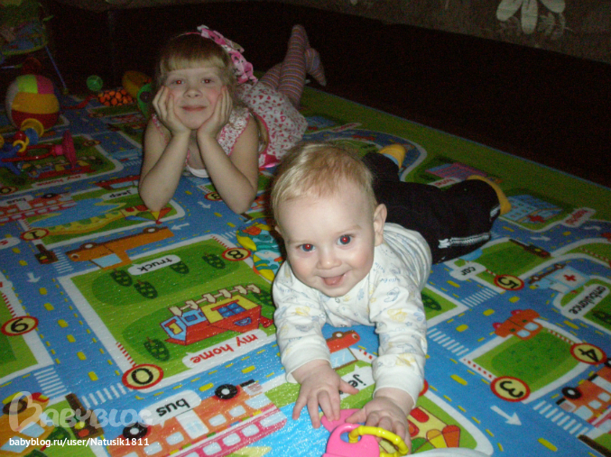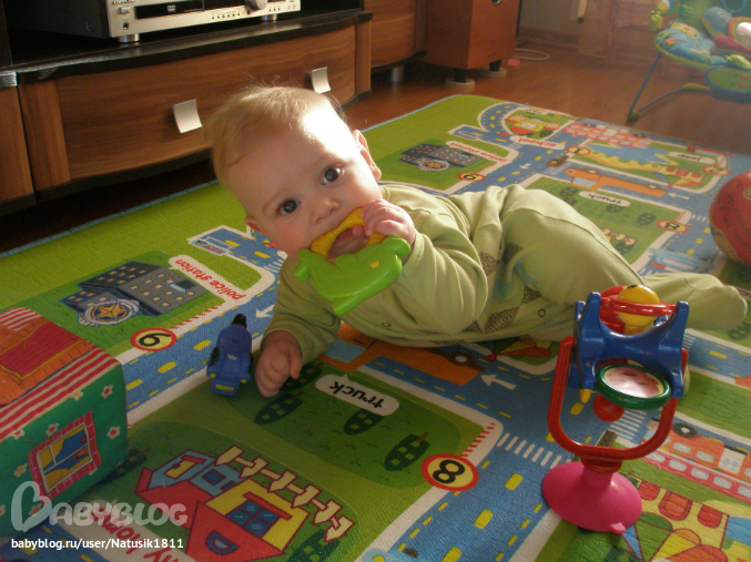 со вчерашнего дня (6мес.18дн.) Даня ползает по настоящему на четвереньках, он и раньше умел так передвигаться, только по-пластунски у него быстрее получалось))