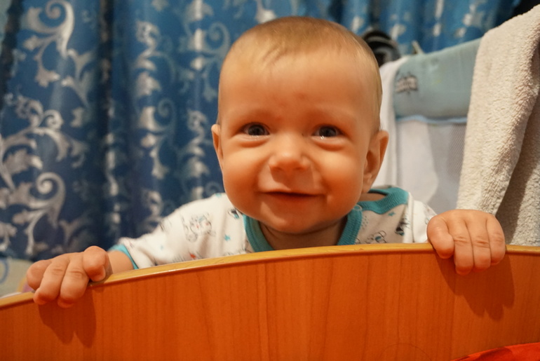 Стал жутким погоняхой, без меня вообще в комнате не находится, если меня не видит - сразу орет!!! В рев пускается даже на улице в коляске, если я его качу, а он меня не видит и не слышит. (он в коляске лицом к улице)