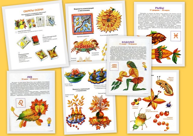 - как не просто сделать гербарий, а придумать целые картины из осенних листьев и составить образы.