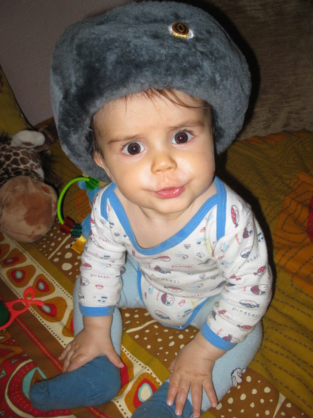 ну а это пока собирали папу в командировку, мерили его зимнюю шапку