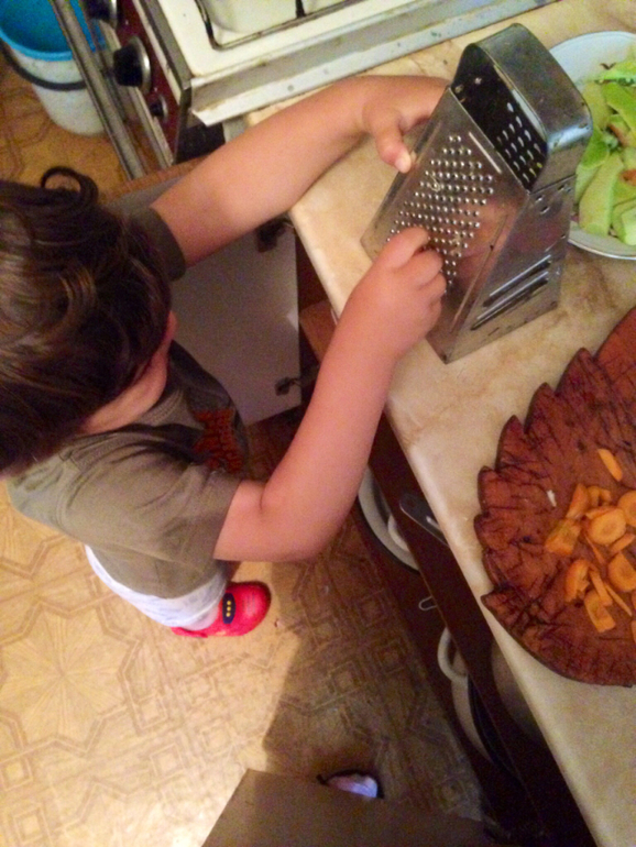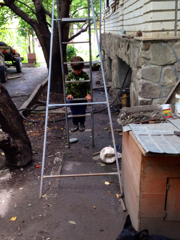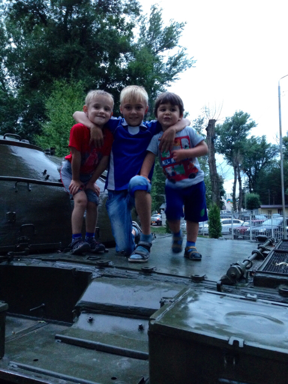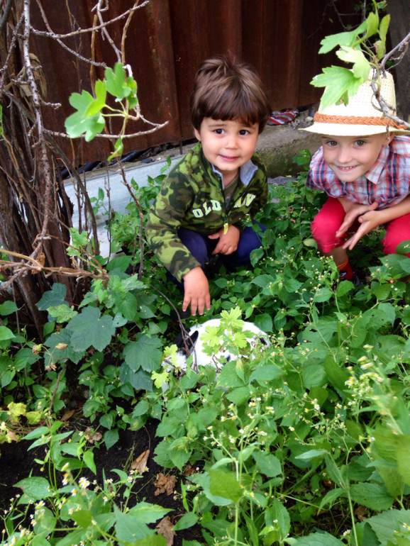 Теме тут хорошо, у свекров собака, кошка, кролик, курочки и цыплята. С прогулкой можно не париться, пока с утра всех проведаем, уже часа 2 и пройдет. И Темины братья двоюрные почти каждый день тут, пока Тема ничему хорошему у них не научился.. Сегодня вот драться стал.. Но все равно им весело.